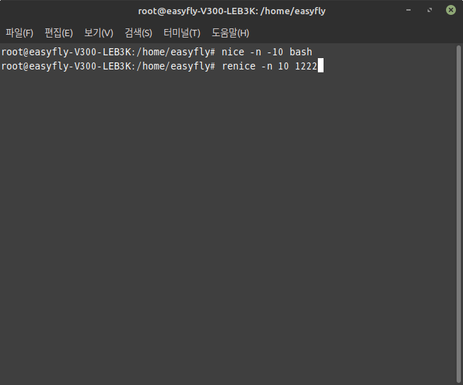 ● root: -20~19 사이의 값을 지정할 수 있으며 값을 감소시켜 우선순위를 높일 수도 있습니다.