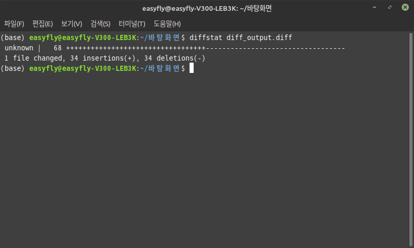diffstat를 사용하면diff명령어의 결과를 요약하여 볼 수 있습니다.- 먼저
