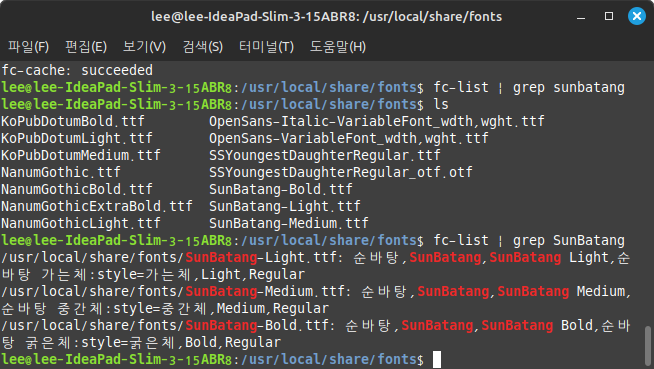 - 폰트 캐시를 갱신하여 시스템에서 폰트를 인식하게 합니다.
