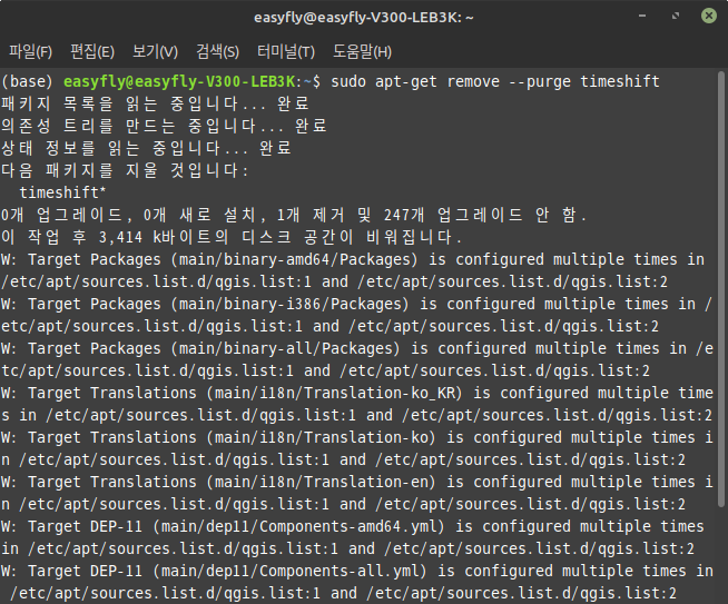 TimeShift 패키지를 시스템에서 완전히 제거합니다.