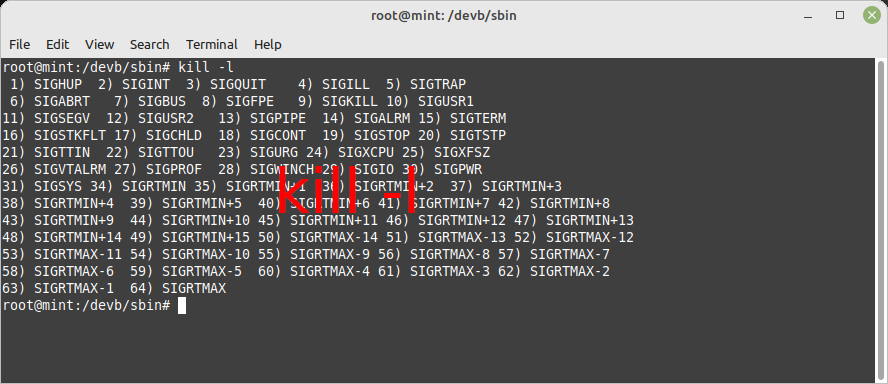- -l: 사용 가능한 시그널 목록을 출력한다.