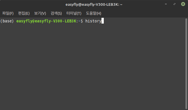 history명령어를 사용하여 이전에 입력한 명령어의 목록을 확인할 수 있습니다. 기본적으로 최근 입력한 500개에서 1000개 정도의 명령어가 저장됩니다.history- 명령어 이력에는 각 명령어 앞에 번호가 붙어 있어, 특정 번호의 명령어를 쉽게 재사용할 수 있습니다.