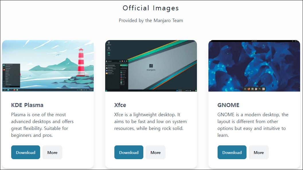 - 다양한 데스크탑 환경 지원: 맨자로는 여러 데스크탑 환경을 공식적으로 지원합니다. 대표적으로 KDE 플라즈마(KDE Plasma), XFCE, GNOME이 있으며, 사용자는 자신의 취향에 따라 데스크탑 환경을 선택할 수 있습니다.