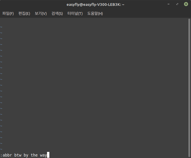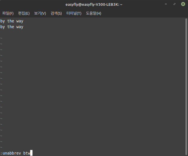 이미 설정한 약자를 제거하려면 :unabbrev 명령어를 사용합니다.