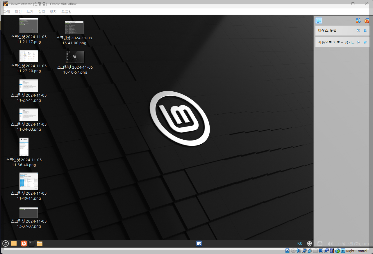 마우스 통합은 VirtualBox에서 가상 머신 내에서 마우스를 원활하게 사용할 수 있도록 해주는 기능입니다. 기본적으로 가상 머신에 들어갈 때는 마우스가 가상 환경에 갇히게 되어, 마우스 커서를 호스트(사용 중인 컴퓨터)와 가상 머신 사이에서 자유롭게 이동할 수 없습니다. 이 기능을 활성화하면 마우스 커서가 호스트와 가상 머신 사이를 자유롭게 오갈 수 있게 되어 보다 자연스럽게 작업할 수 있습니다.