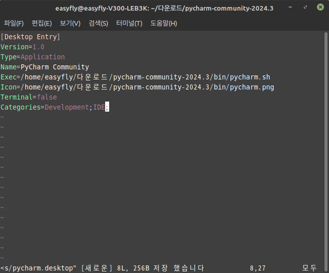 - 데스크톱 파일 생성: [vi ~/.local/share/applications/pycharm.desktop]