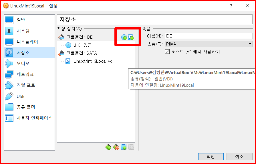하드디스크 종류는 VDI, 즉 VirtualBox 디스크 이미지가 되겠습니다.