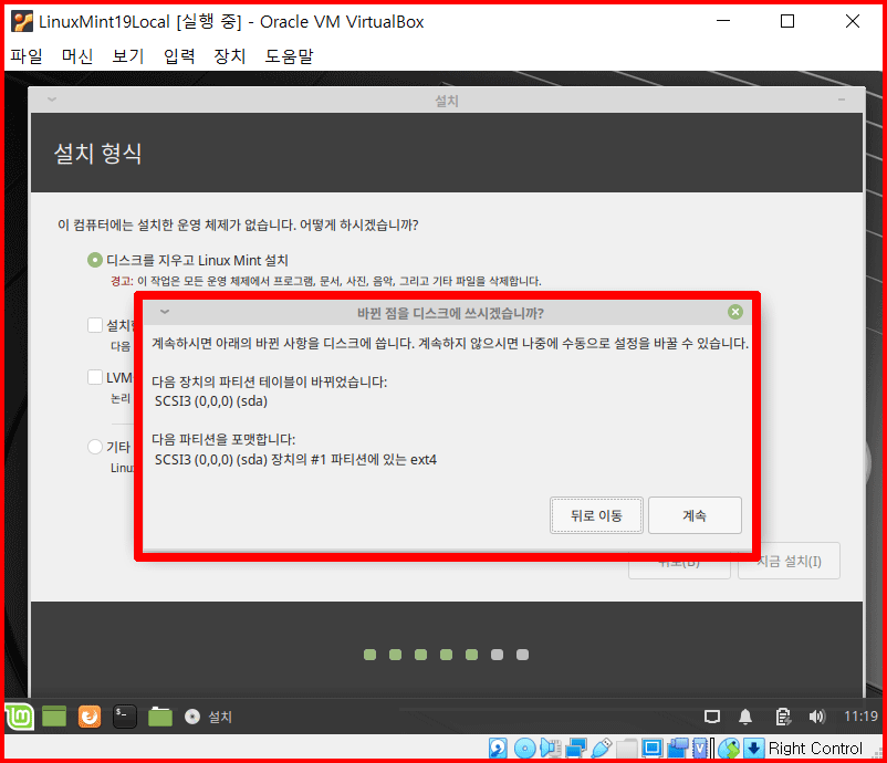 이것으로 리눅스민트가 설치됐습니다. 이제 리눅스를 공부할 환경은 준비됐네요.