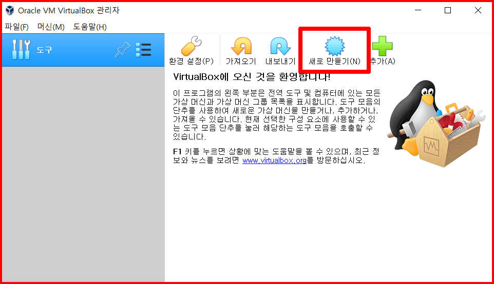 내려받은 설치 파일은 이미지 형태로 사용할 수도 있고, DVD에 구워서 사용할 수도 있습니다. 먼저 버츄얼박스 환경부터 설정하시게요.