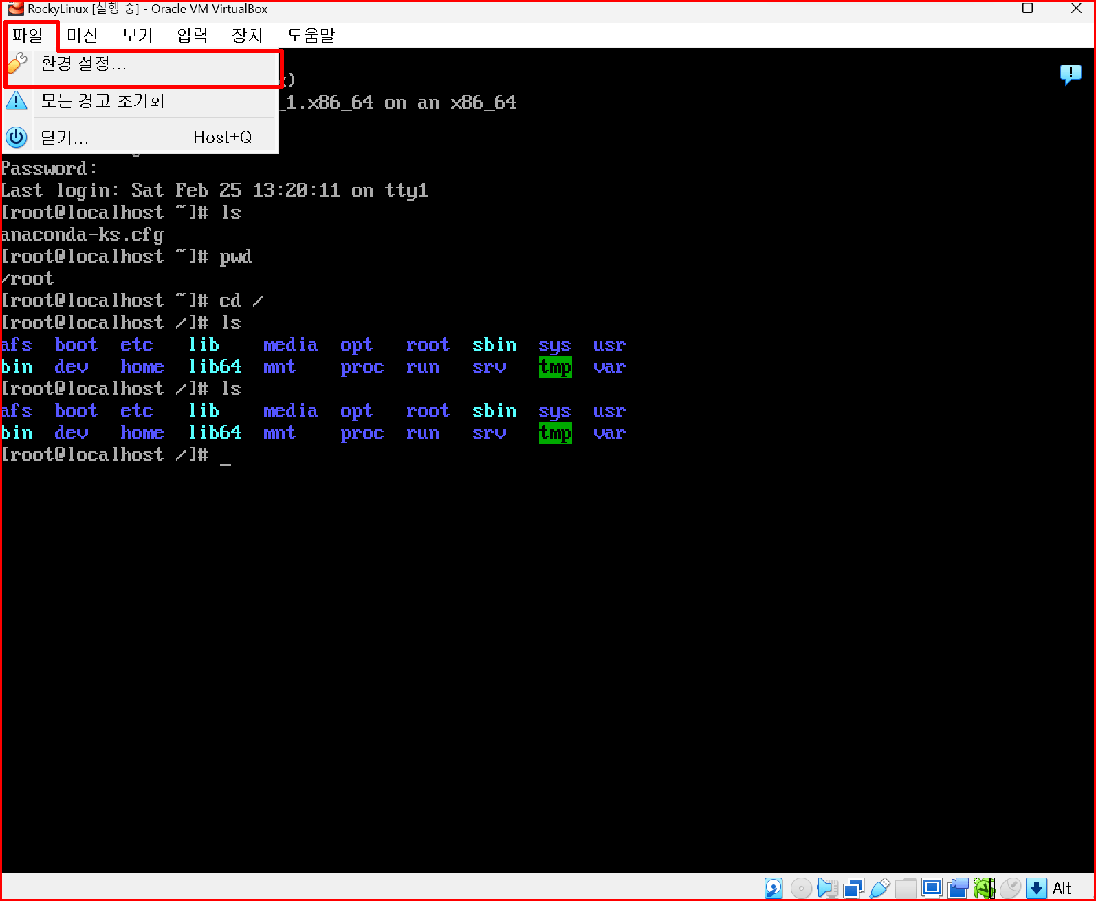 버추얼박스 사용 중에 '호스트 키'를 누르면 바로 호스트 상태로 빠져나옵니다. 버추얼박스에서 리눅스를 사용 중에 '호스트 키'를 누르면 자신의 윈도 환경으로 변경되기 때문에 '호스트 키' 사용 요령이 익숙해질 필요가 있습니다.