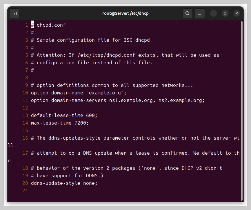 /etc/dhcp/dhcpd.conf 파일은 DHCP 데몬(daemon)인 dhcpd가 사용하는 설정 파일이며, DHCP의 로그 메시지를 다른 곳으로 전달하려면 log-facility 항목을 이용합니다.