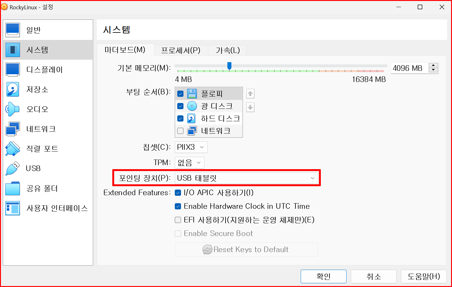가상 머신 버추얼박스 실행 시에 마우스 클릭이 안 되는 경우가 발생할 수 있습니다. 기본 설정이 'PS/2 마우스'로 되어 있어 발생하는 경우가 생깁니다. 이 마우스를 'USB 태블릿'으로 변경하겠습니다.