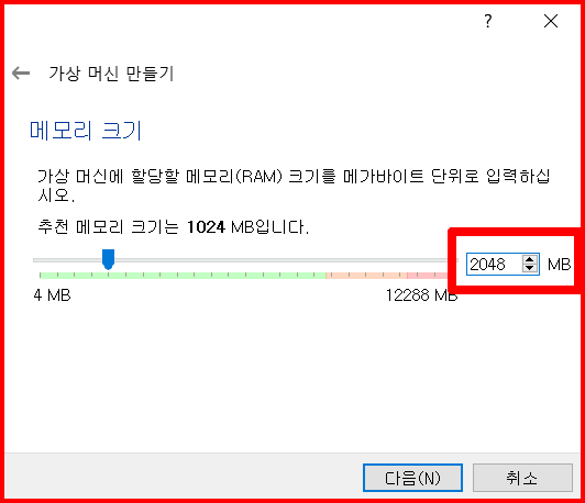 메모리는 호스트 자원에 따라 다를 수밖에 없습니다. 기본은 512MB이지만 2048MB 정도가 좋겠네요.