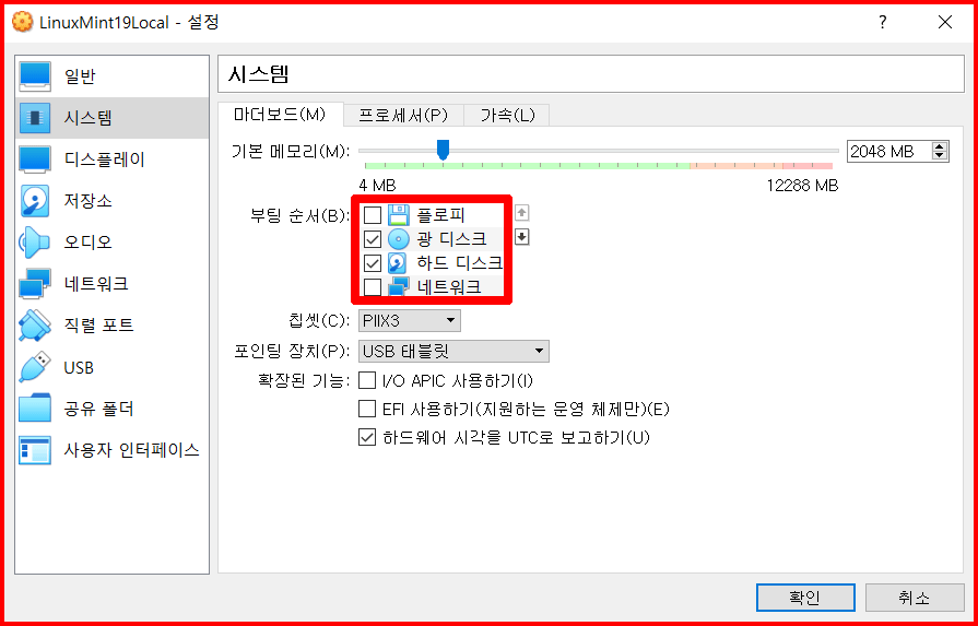 이제 플로피 쓸 일은 없을 듯. 해제합니다. 부팅 순서에 광디스크가 가장 상위에 있습니다.