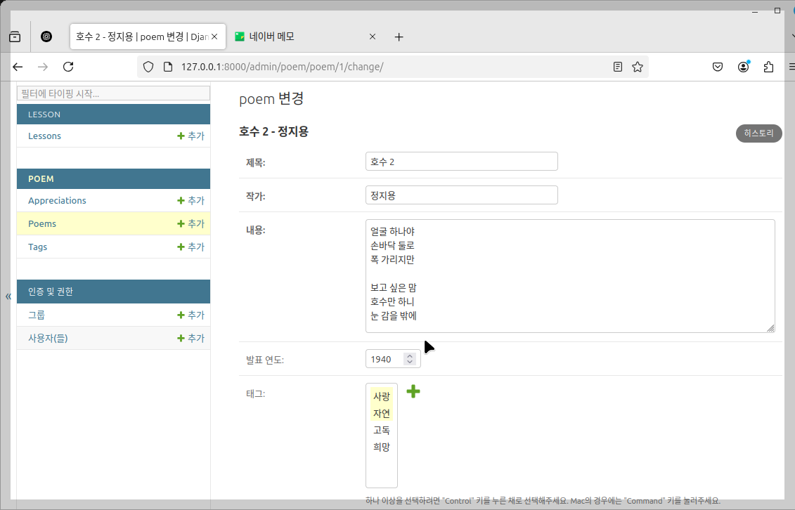 [Django 프로젝트] 시 감상과 감상문 남기기