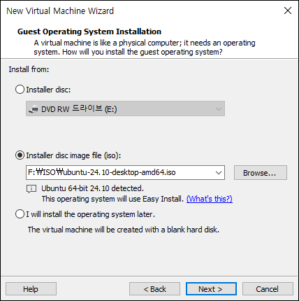 - Installer disc image file (ISO) (보통 ISO 파일 선택)