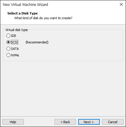 - 기본값은 LSI Logic SAS 또는 NVMe (OS 종류에 따라 다름)