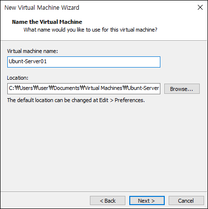 - 가상 머신 파일(.vmx, 가상 디스크 등)을 저장할 경로를 지정합니다.