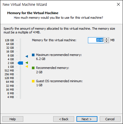 - VM에 할당할 메모리를 지정합니다.