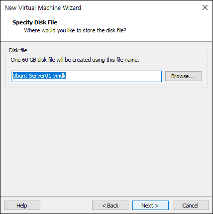 - 가상 디스크 파일 이름과 저장 위치 지정 (.vmdk)