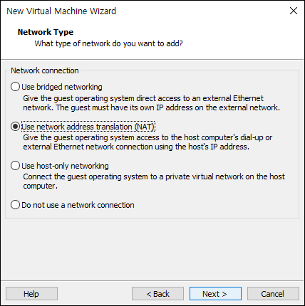 - 가상 머신이 네트워크에 어떻게 연결될지 선택합니다.