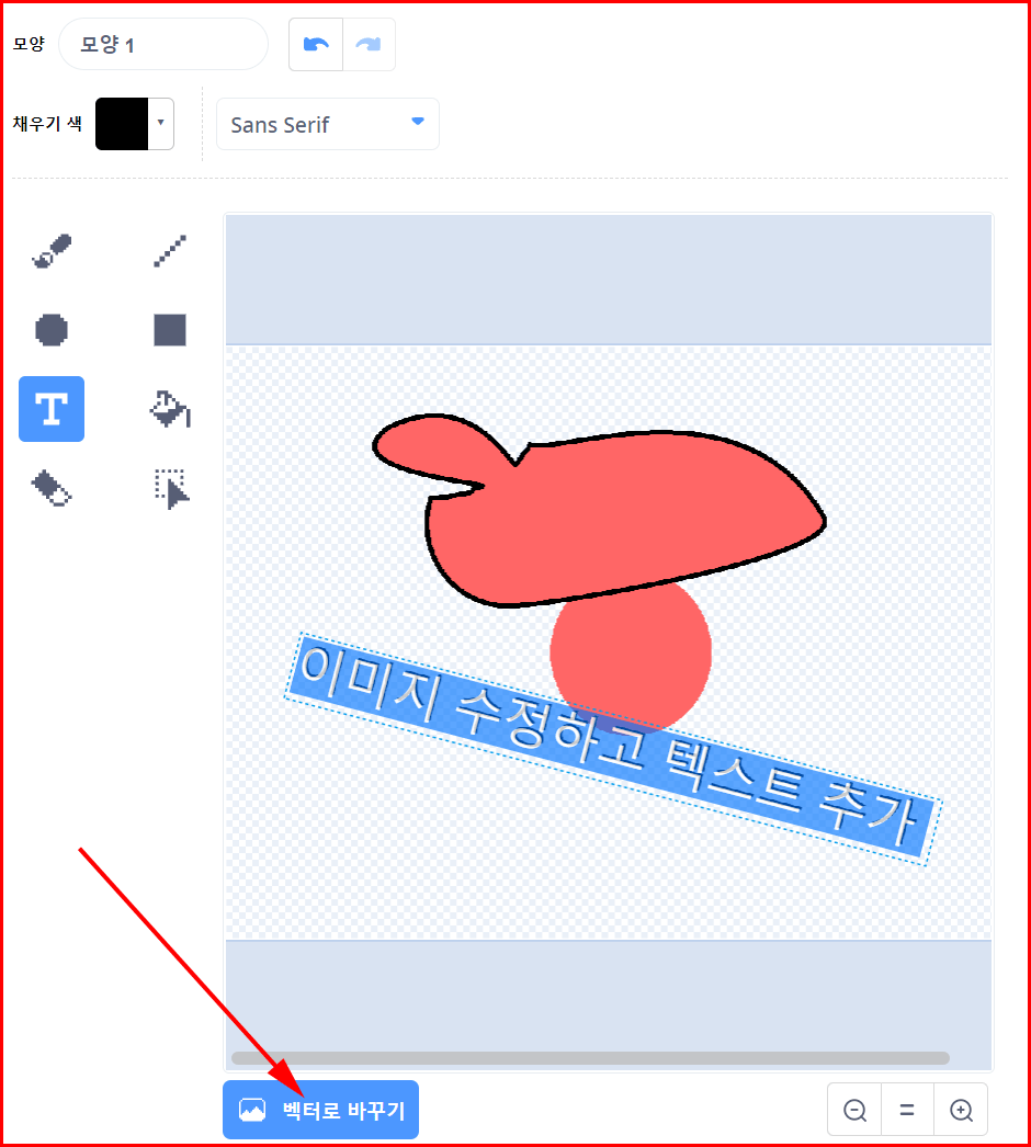 비트맵으로 변경된 이미지 아래에는 '벡터로 바꾸기'라는 버튼으로 변경되는군요.