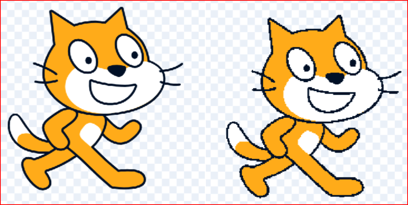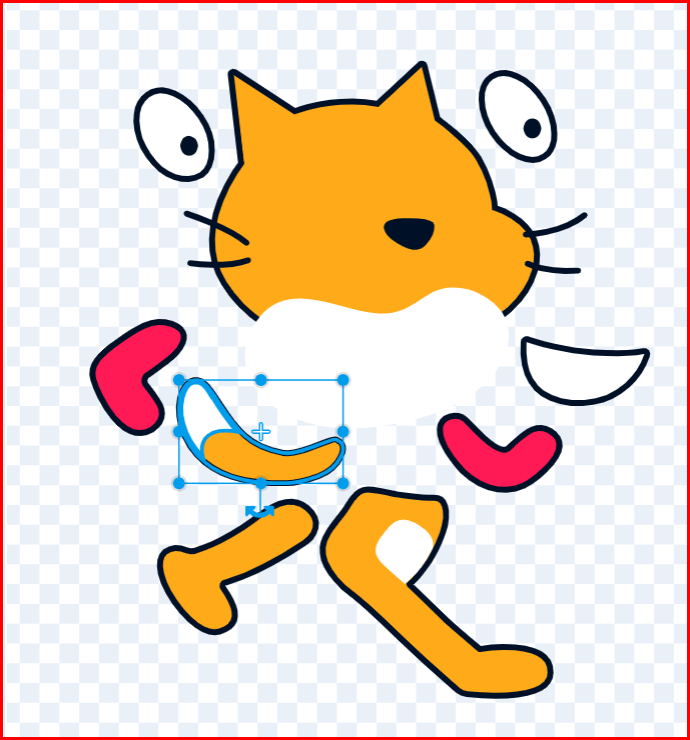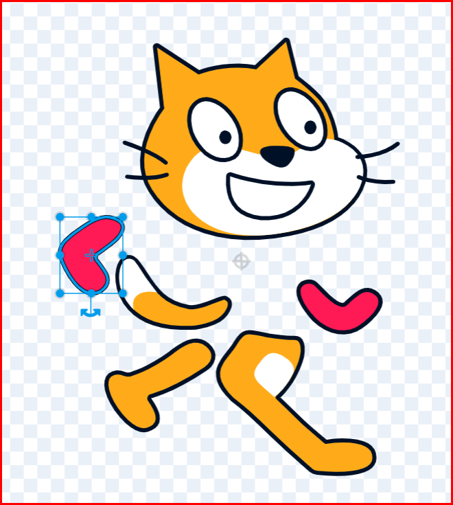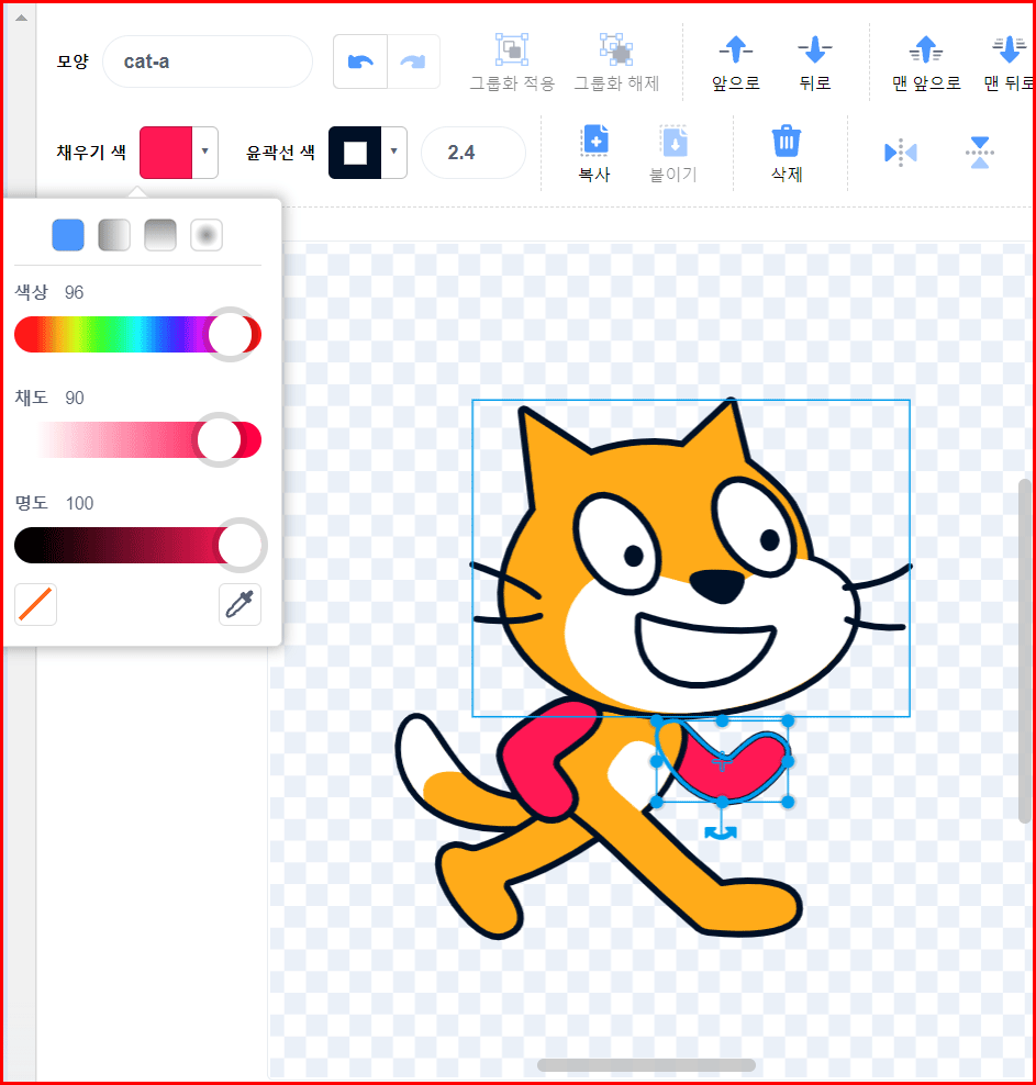 스프라이트 전체를 선택한 상태에서 모서리 조절점을 이용하여 확대하거나 축소할 수 있습니다. 물론 벡터 이미지는 확대하거나 축소해도 외곽선이 깨지지 않습니다.