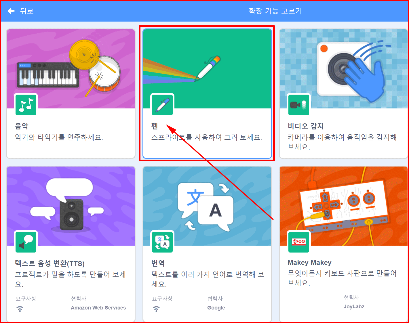 펜을 사용하기 위해서는 확장 기능 '펜'을 선택합니다.