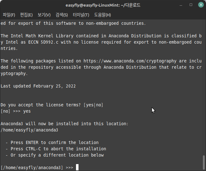 리눅스에서 아나콘다 설치
