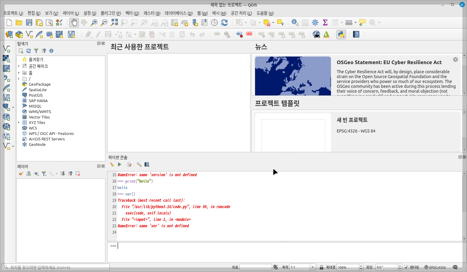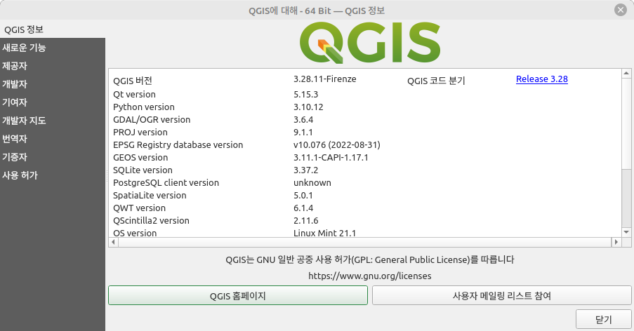 QGIS 버전 업그레이드QGIS(Quantum Geographic Information System)는 지리 정보 시스템(GIS) 소프트웨어로, 다양한 플랫폼에서 사용 가능합니다. 리눅스에서 QGIS의 최신 버전을 설치하는 방법은 다음과 같습니다. 여기서는 Ubuntu를 기준으로 설명하겠습니다.QGIS 최신 버전 설치 방법현재 시스템 업데이트:먼저, 시스템 패키지를 업데이트합니다.sudo apt update;sudo apt upgrade; QGIS 저장소 추가:QGIS의 공식 저장소를 추가해야 합니다. 이를 위해 다음 명령어를 사용합니다.sudo add-apt-repository ppa:ubuntugis/ppa 패키지 목록 업데이트:저장소를 추가한 후, 패키지 목록을 업데이트합니다.sudo apt-get..