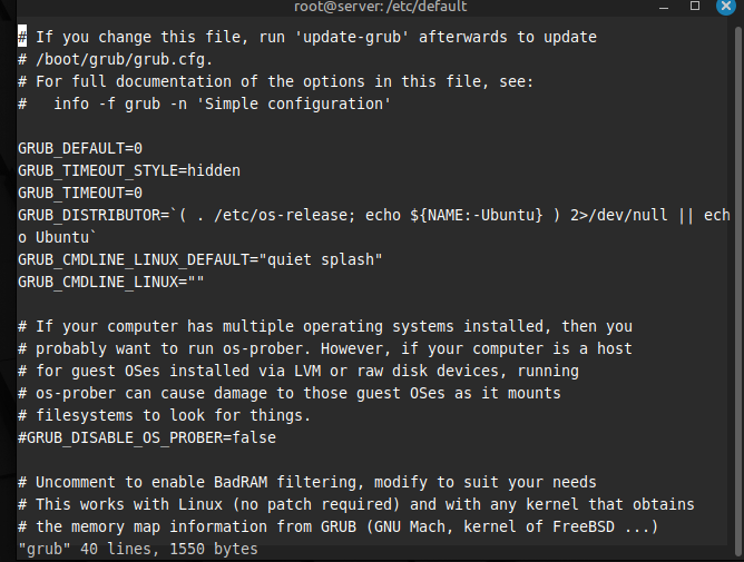 GRUB 옵션 여러 옵션 중에 "quiet" 옵션은 부팅 과정에서 커널 메시지를 숨기는 역할을 합니다.설명GRUB의 GRUB_CMDLINE_LINUX_DEFAULT="quiet splash" 설정에서 quiet는 다음과 같은 기능을 합니다:부팅 시 출력되는 커널 메시지를 최소화일반적으로 리눅스 시스템은 부팅할 때 커널 로딩, 드라이버 초기화, 서비스 시작 등을 상세하게 출력합니다.quiet 옵션을 사용하면 이러한 메시지가 화면에 표시되지 않으며, 대신 부팅 화면이 깔끔해집니다.로그 레벨을 낮춤quiet 옵션이 활성화되면 대부분의 디버깅 메시지가 표시되지 않고, 심각한 오류나 중요한 알림만 출력됩니다.함께 사용되는 옵션splashquiet splash 조합에서 splash는 부팅 시 스플래시 이미지(예: ..